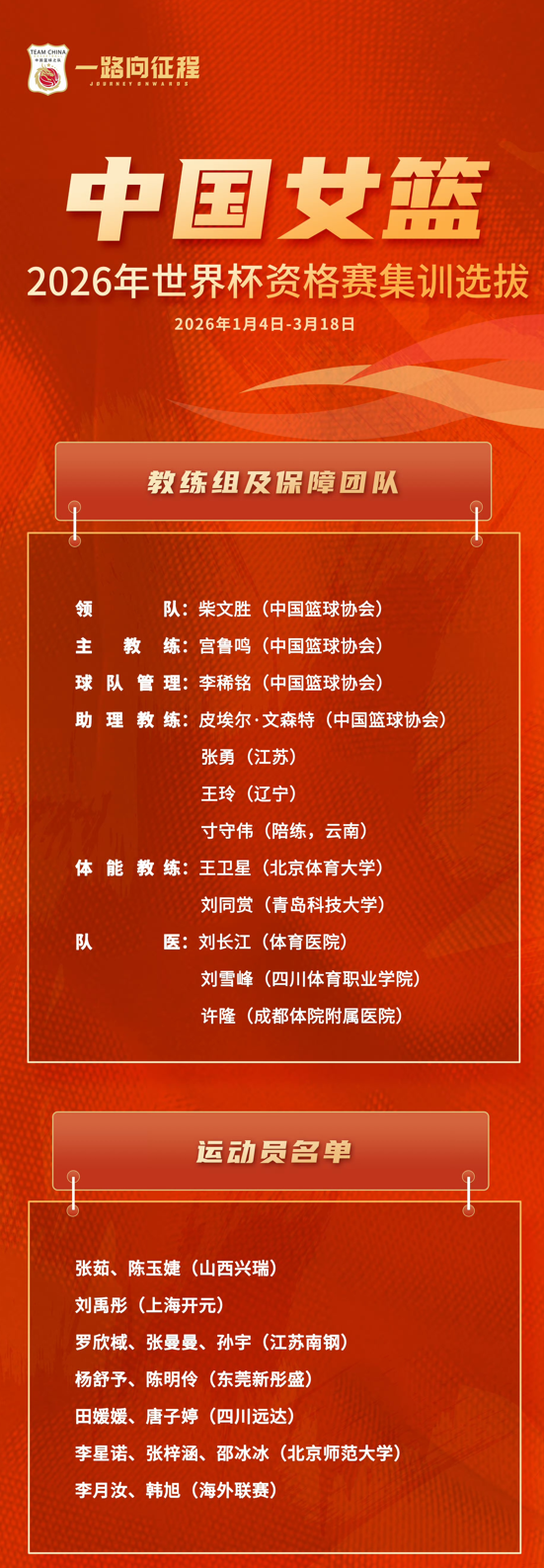 1月初的国家队集训名单如下,
